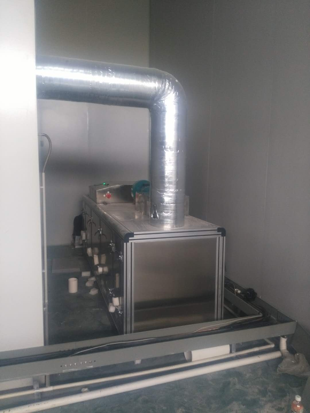 当食品储存在仓库中时,由于水蒸气进入仓库,导致冷库内外温差较大,导致仓库外空气中水蒸气的分压远大于仓库内空气中水蒸气的分压。因此,当食物储存在仓库中时,仓库外的大量蒸气会通过敞开的仓库门进入仓库,在寒冷的情况下凝结在仓库中。